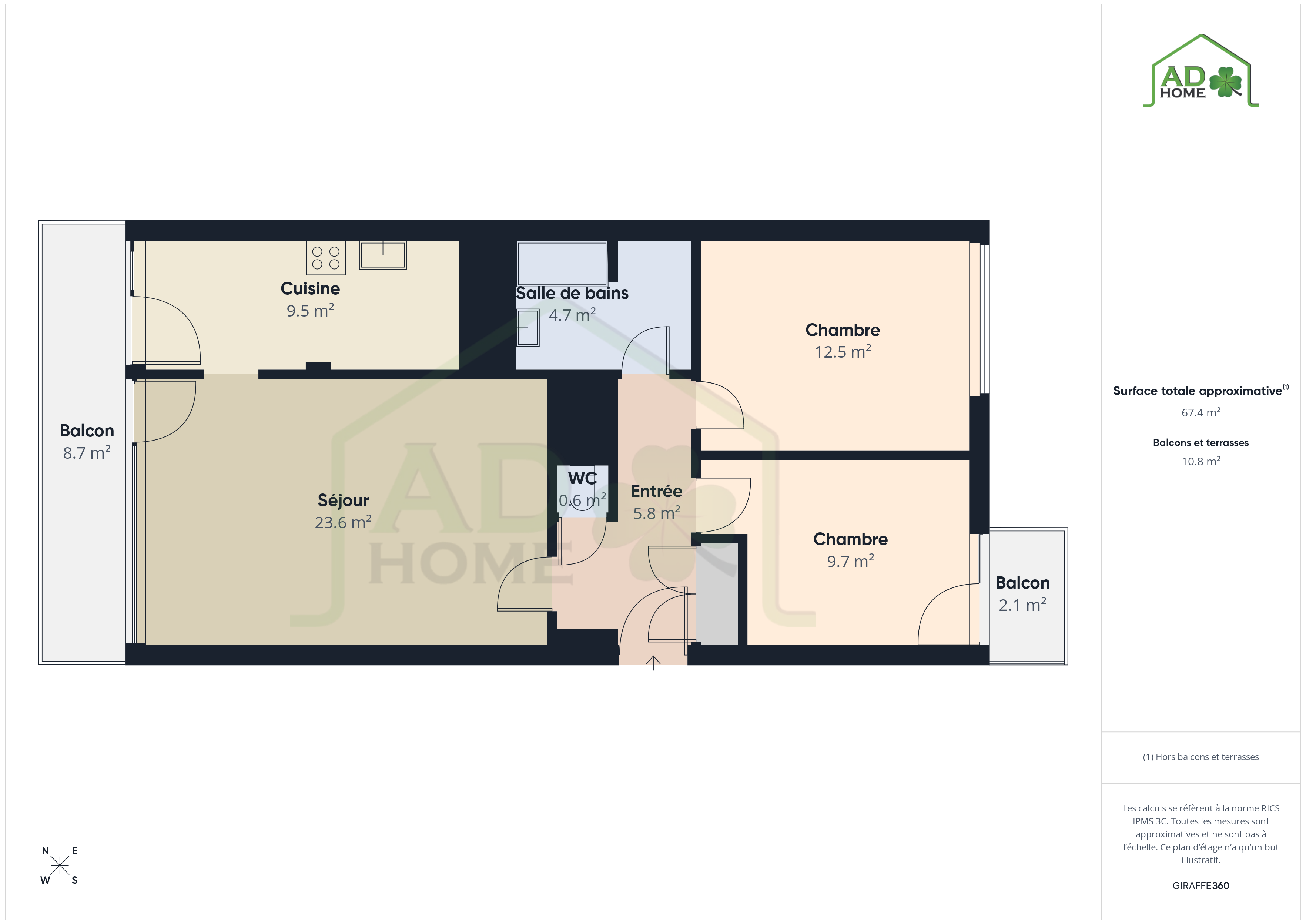 | Chambre 2 (surface) | 9.8 m² |