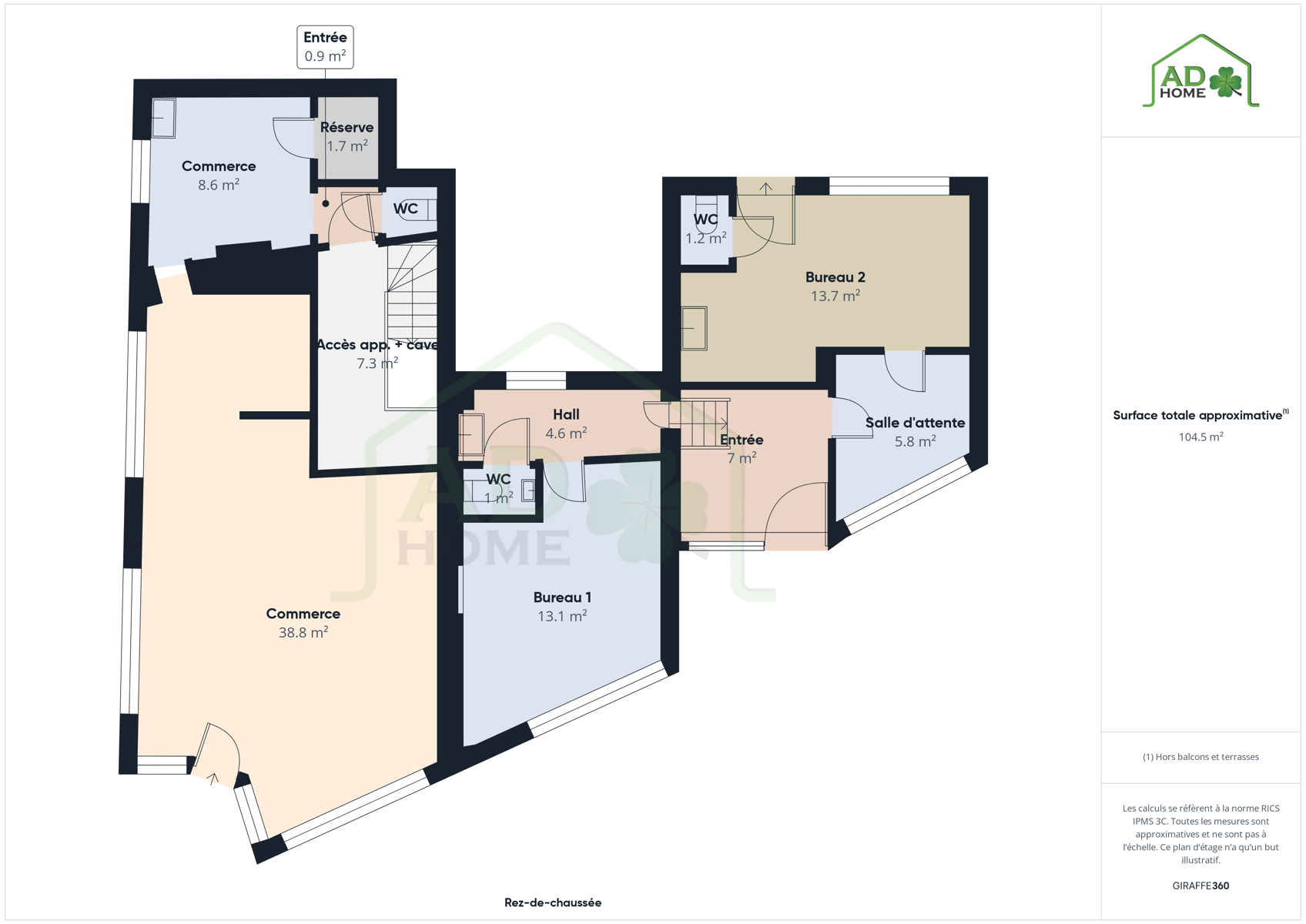 Le rez-de-chaussée se compose d’un commerce indépendant bénéficiant d’une excellente visibilité, équipé d’une pompe à chaleur, d'un système d'alarme et d’un système de caméras de surveillance.