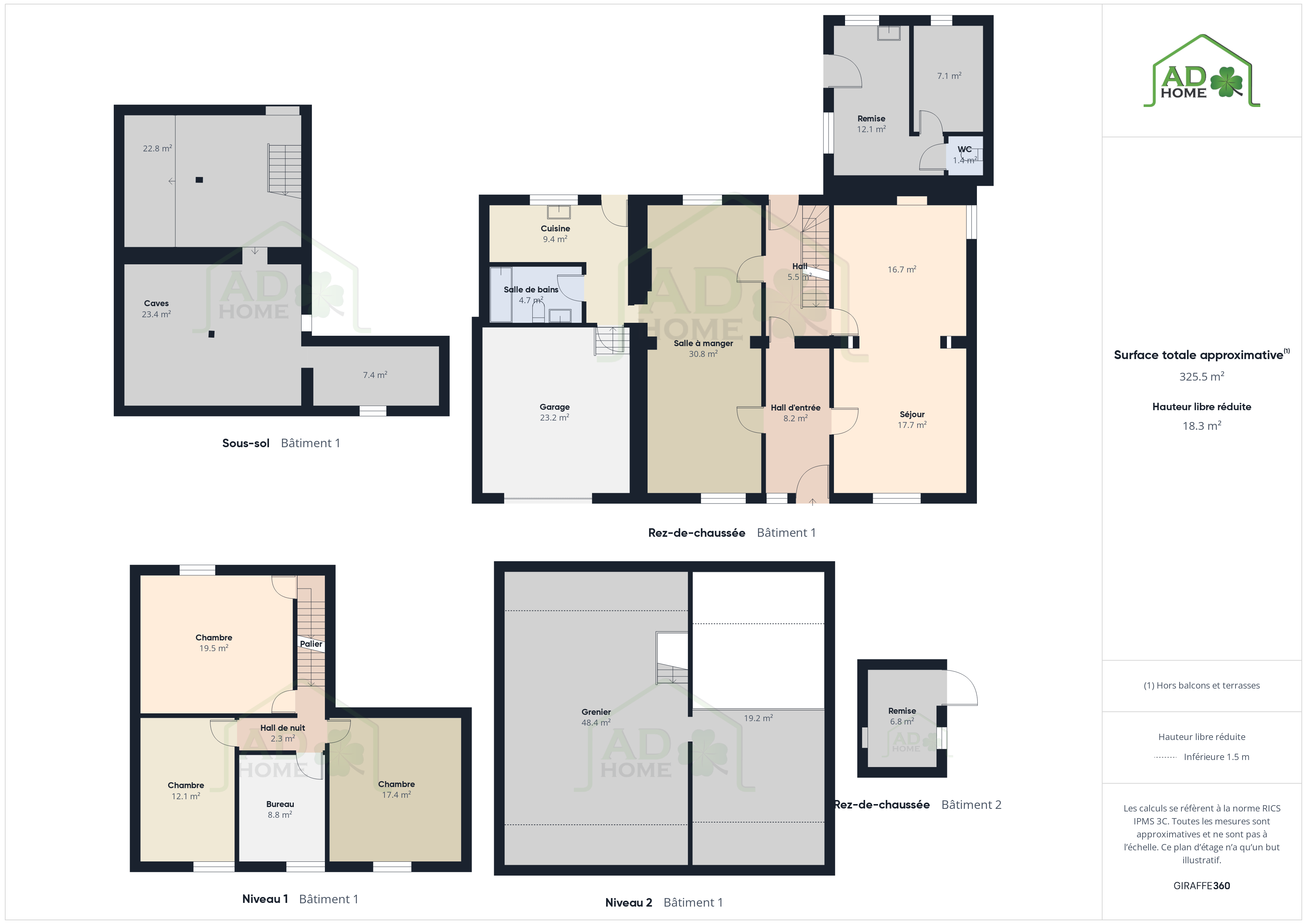 Le bien dispose également d’un vaste grenier aménageable, de caves et de diverses remises.